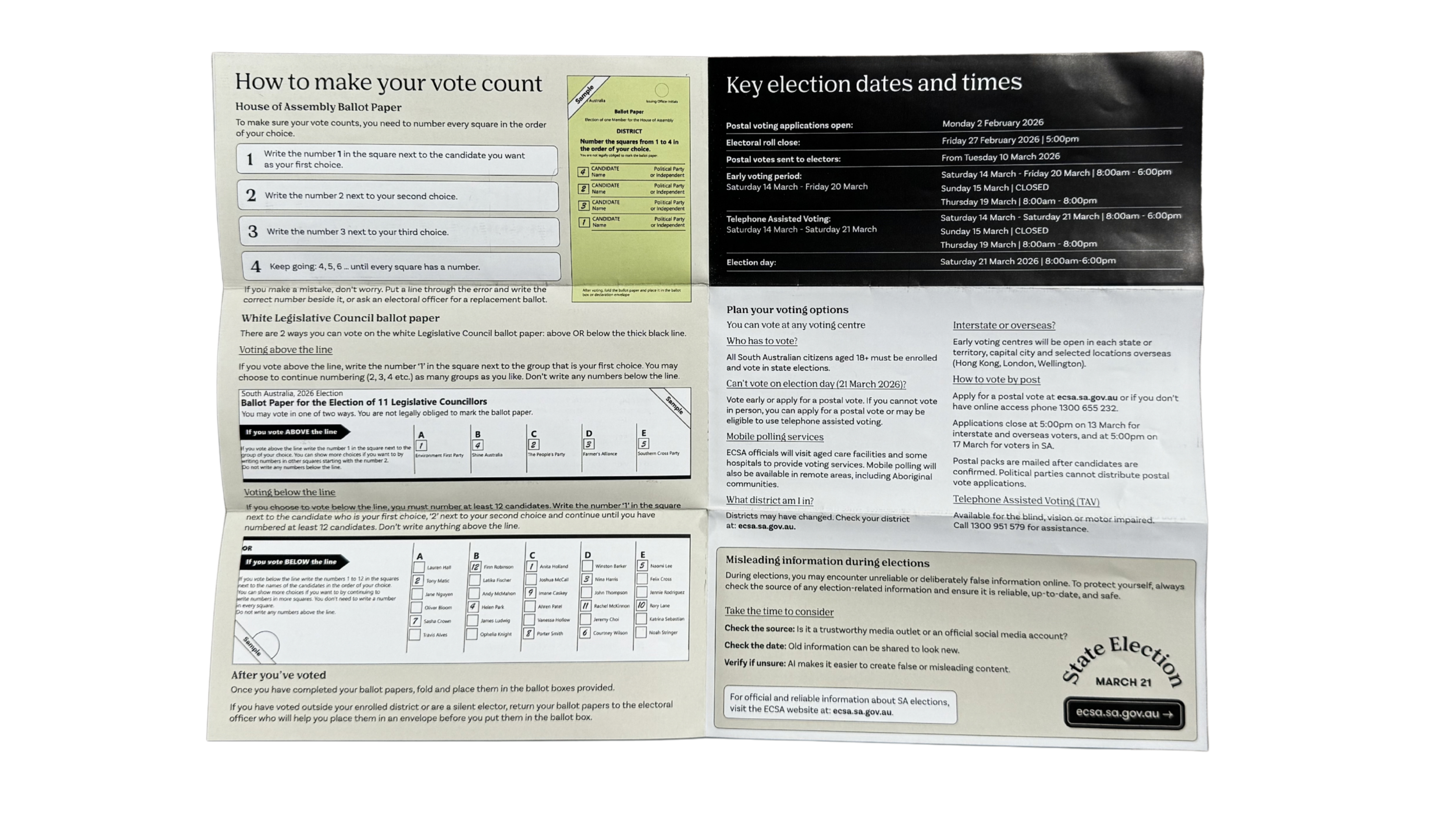 As an independent agency upholding a lawful, fair and honest democracy, the Electoral Commission of South Australia (ECSA) works to deliver the South Australia state elections, local council elections, SA First Nations Voice election and more.
